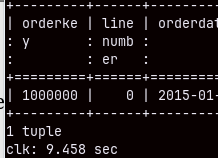 This is how long it takes MonetDB to read a large number of rows. Columnar databases are better suited for aggregate queries, but we can see that MonetDB is capable of performing OLTP types of queries quite well.