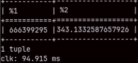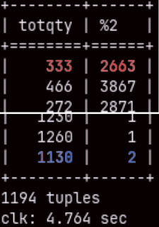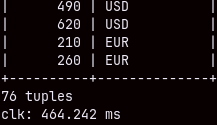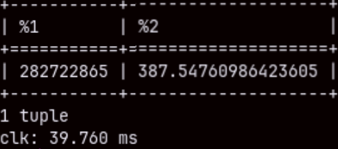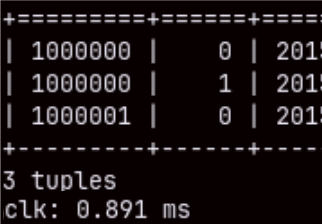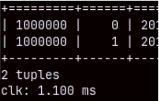 We will get the result even faster. This proves that the result is not cached. MonetDB run the query again, but this time "cracking" made our query faster.
