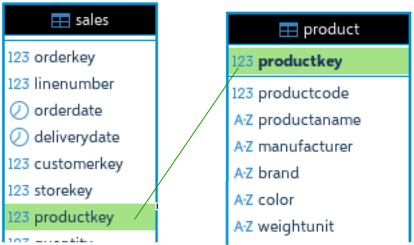 I will recreate foreign key constraint toward "product" table. ALTER TABLE sales ADD CONSTRAINT FKfromProduct FOREIGN KEY ( productkey ) REFERENCES product ( productkey );