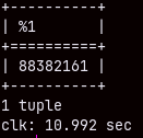 I will now restart my computer. I want to make sure to run a cold query. This simple query bellow will run for 10 seconds. MonetDB database becomes faster as more queries are executed. This ability of MonetDB is called "cracking". MonetDB will automatically sort, group and index columns during the SELECT queries. That will make subsequent queries faster.