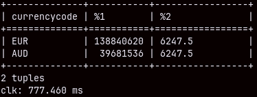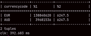 If we want to count unique combinations of the orderkey and currencycode, then our query will be slow, it will last almost 11 seconds.