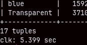 Immediately after, I run the same query, by it was grouped by color. The time was again 5 seconds.