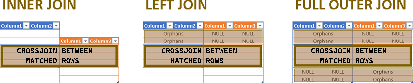 INNER JOIN means only matching rows will remain after join. In LEFT JOIN, we will not exclude any row from the left table and such rows will be matched with null values in the right table. A FULL OUTER JOIN means that no one will be left out. All orphan rows will be padded using nulls.