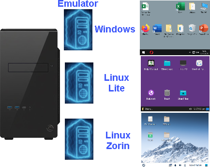 It is also possible to emulate Operational System with all the programs on that system. It is just like we have several computers inside of the one computer case.