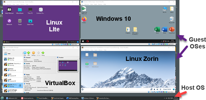 Emulator for OS is called hypervisor. One such hypervisor is VirtualBox. VirtualBox is application that we install on our computer, and then we create "virtual machines". A virtual machine (VM) is a software-based emulation of a physical computer that runs its own operating system and applications. With VirtualBox, we can use virtual machines like any other application.
