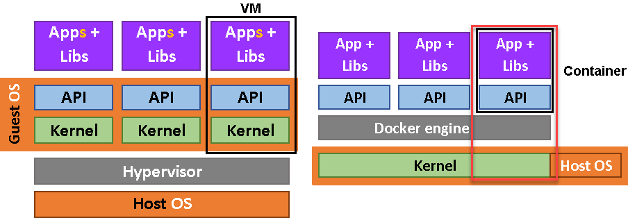 We could say that container is stripped down virtual machine. If we limit virtual machines to only one application, and we force virtual machines to share kernel with the host machine, then we would get containers.