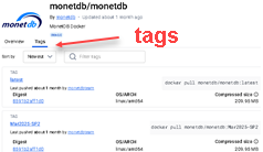 MonetDB containers are hosted on "Docker Hub". MonetDB team will create a new container for each new version of MonetDB. We can find a list of all the MonetDB versions on this page: https://hub.docker.com/r/monetdb/monetdb/tags