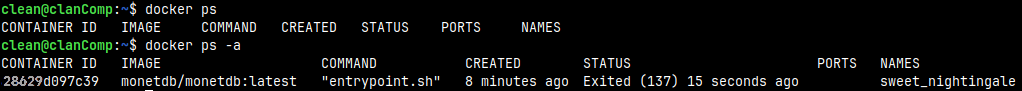 For this to work we need to have some conditions fulfilled on the host operational system: – We must have MonetDB installed on the host computer. – DBfarm must be started. Without that we cannot use "monetdb" command. – DBfarm on the host computer must use port number different than the port number of the MonetDB inside of the container.