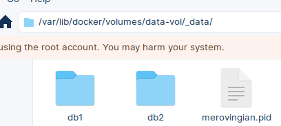 On the host computer we can visit "volume" folder. Inside of it we will see that the new database "db3" has been created.