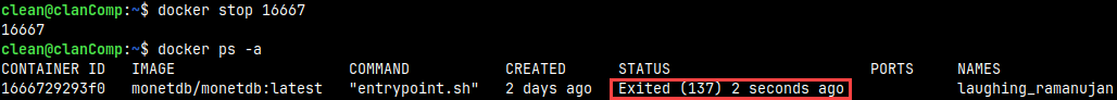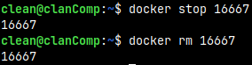 I will now delete everything we have done. First, I will stop and delete container. docker stop 16667 docker rm 16667