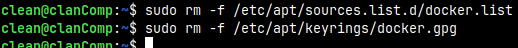 In the next step, we will remove docker repository and GPG key. sudo rm -f /etc/apt/sources.list.d/docker.list sudo rm -f /etc/apt/keyrings/docker.gpg