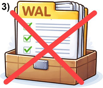 When a transaction occurs, we want to record statement of that transaction as quickly as possible. 1) We write to files that are called "Write Ahead Log" (WAL). These files are just temporary notes. 2) We write down only essential data. 3) We write sequentially onto disk. That is faster. 4) We buffer these notes in memory and we write them to disk in batches. 5) We do not recalculate indexes of any table.